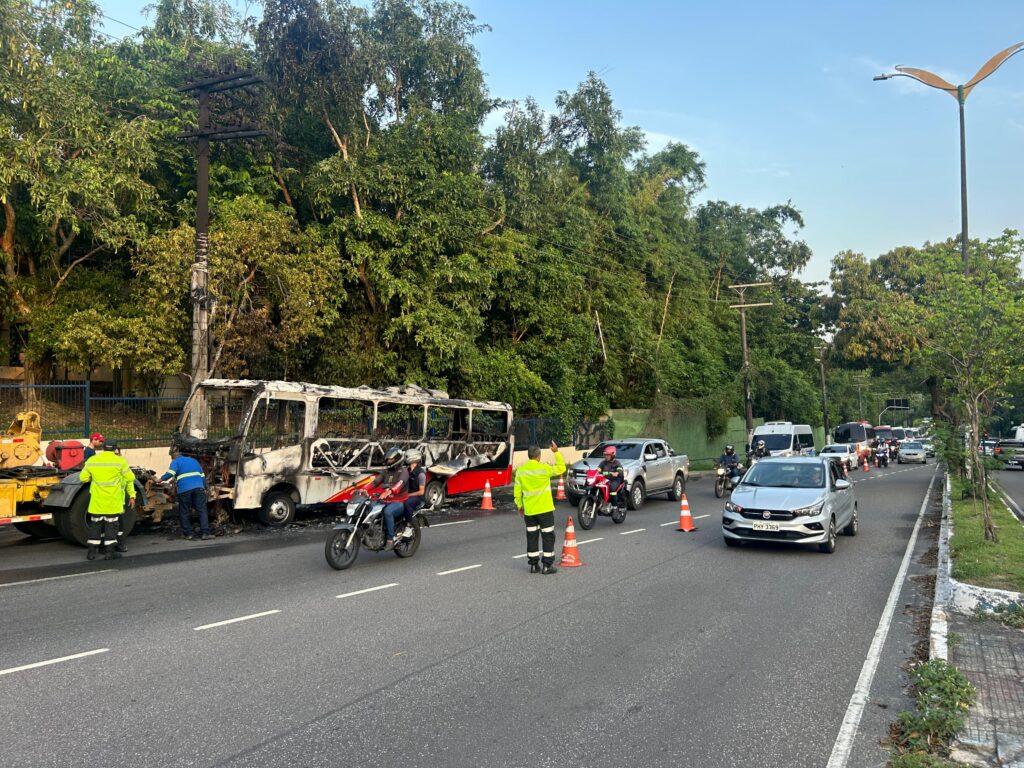 Um trecho da avenida precisou ser interditado para o combate as chamas e para a remoção do micro-ônibus.