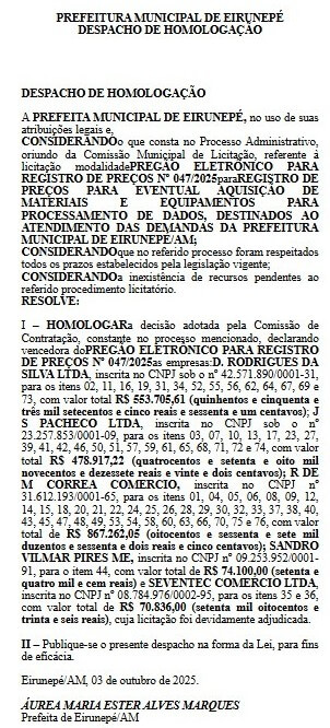 De acordo com informações do Diário Oficial dos Municípios (DOM), Áurea Marques contratou a empresa D. RODRIGUES DA SILVA LTDA, pelo valor total de R$ 375.250,00 (trezentos e setenta e cinco mil duzentos e cinquenta reais).