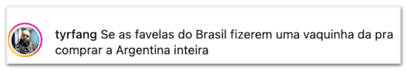 “Se as favelas do Brasil fizerem uma vaquinha, dá para comprar a Argentina inteira”, escreveu um internauta.