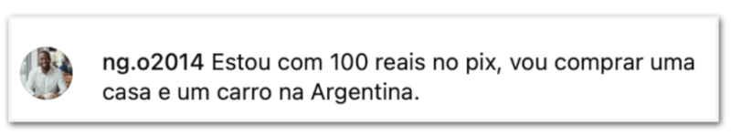 “Estou com 100 reais no Pix, vou comprar uma casa e um carro na Argentina”, escreveu outro.