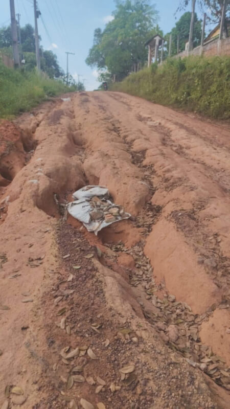 Outra obra denunciada por populares, é no Ramal Dona Creuza que custou mais de R$ 7 milhões, mas que foi abandonada logo após a reeleição de Ferraz no município.