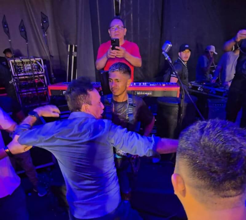 Mas tarde , tentou adentrar o camarim da Banda Calcinha Preta sem autorização onde foi solicitado pelos seguranças que se retirasse.